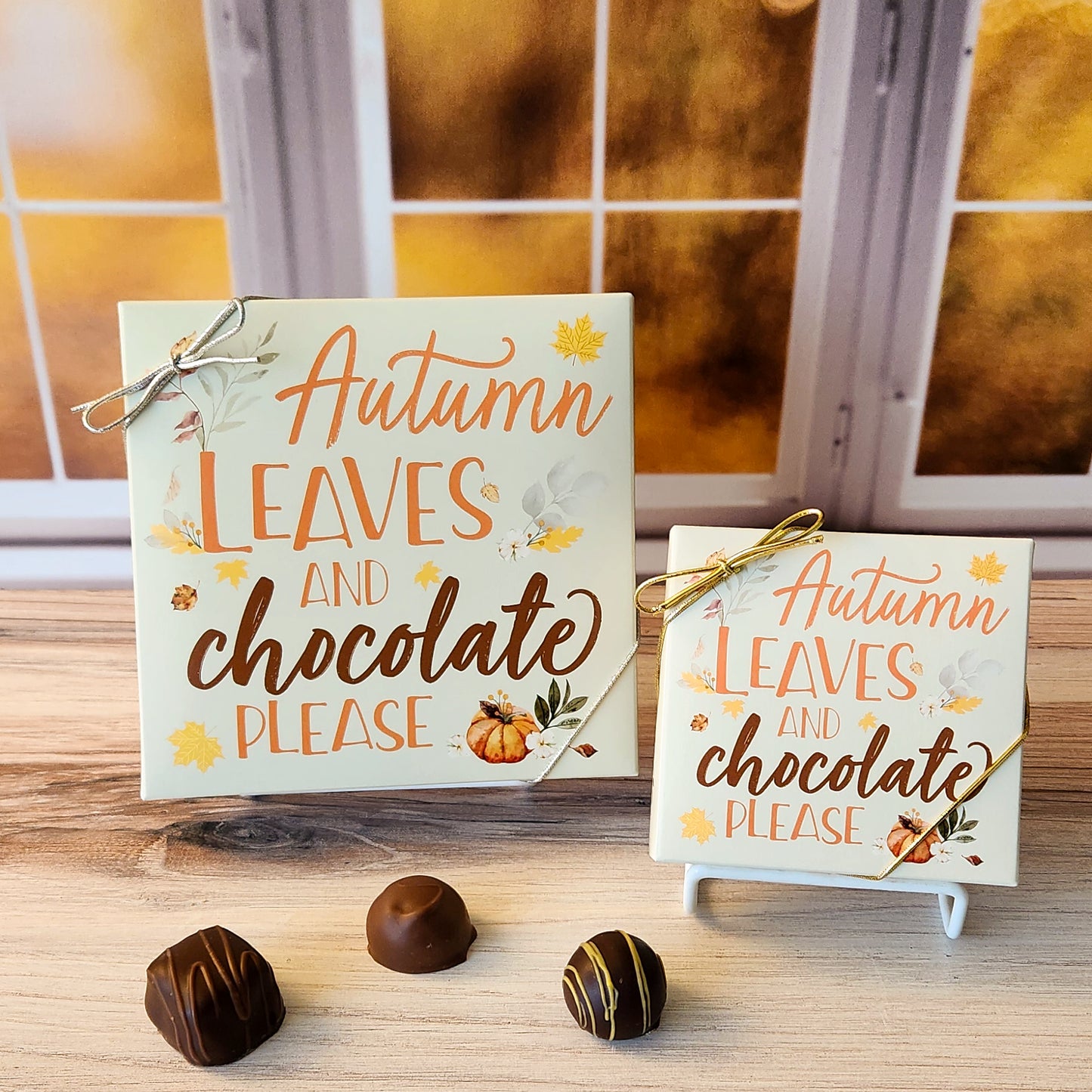 As the air turns crisp and leaves crunch underfoot, there’s nothing better than cozying up with a box of rich, handcrafted chocolates. Our Autumn Leaves and Chocolate Please Themed Box is the ultimate fall candy collection, packed with the smooth, creamy, and indulgent flavors that make the season so sweet. Whether you're gifting it, sharing it, or sneaking a piece for yourself, this festive box is a must-have for chocolate lovers.