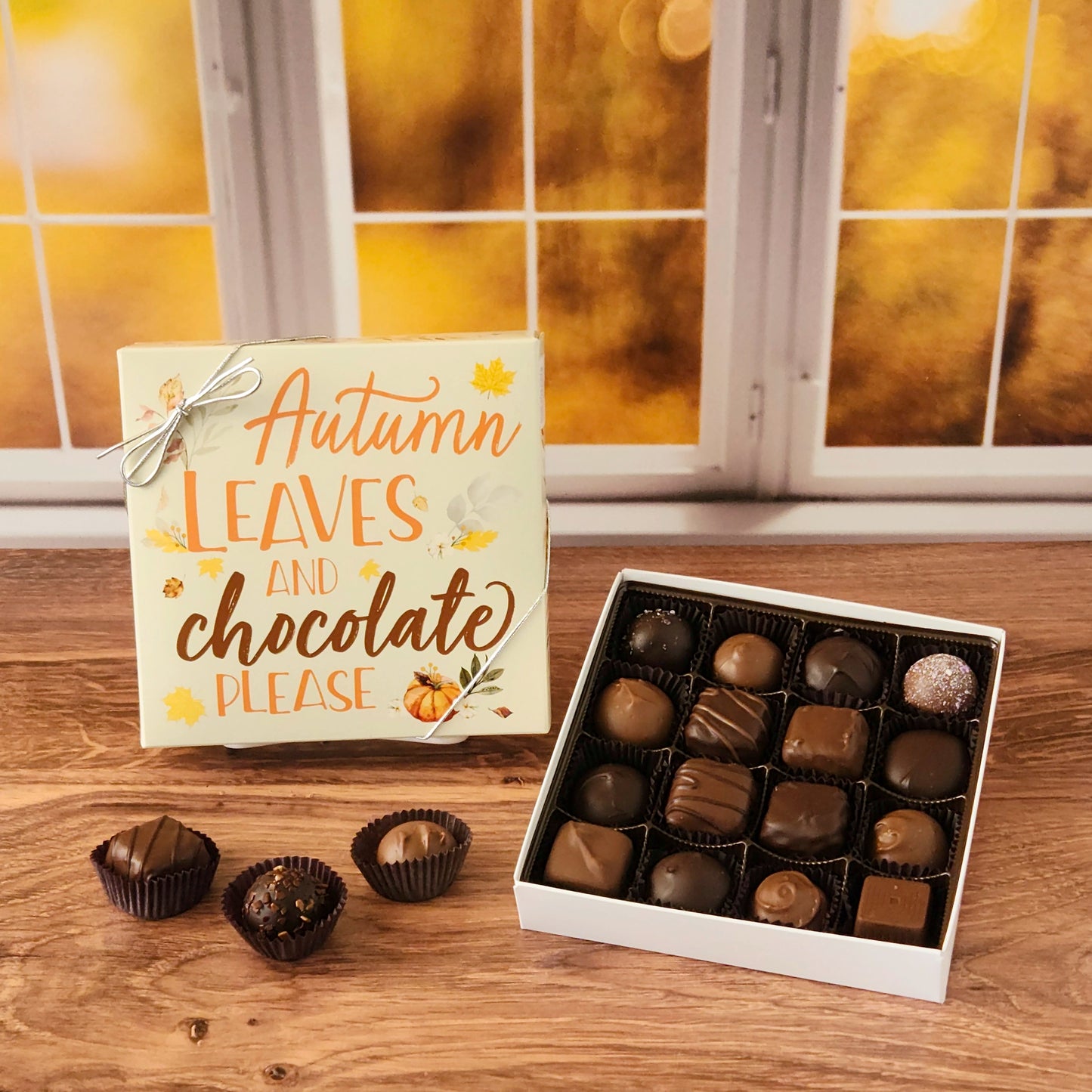 Autumn Leaves and Chocolate Please Themed Box with Popular Assortment