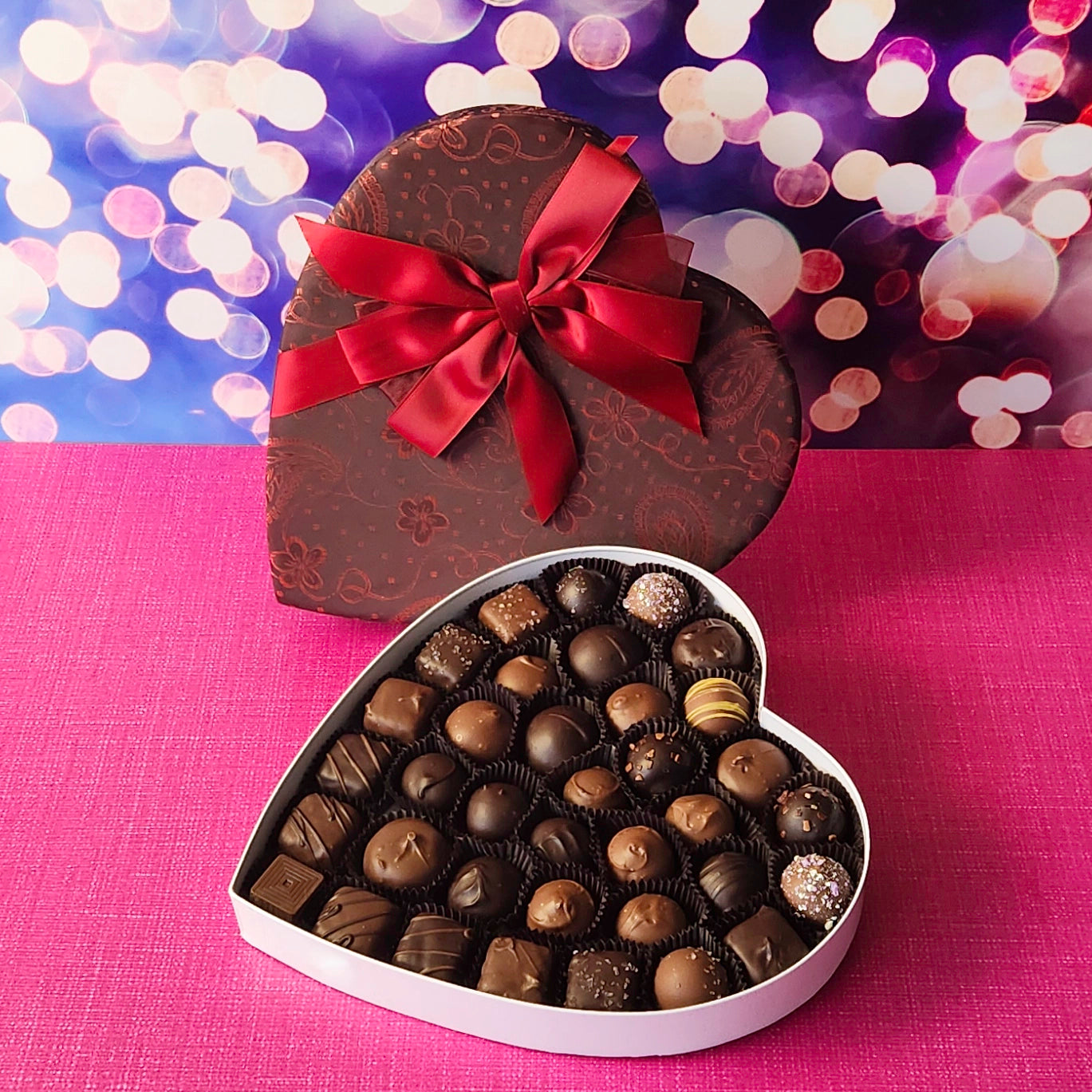 Show your love this Valentine’s Day with our beautiful Heart Boxes, filled with a popular assortment of creamy milk and rich dark chocolates. With a variety of box styles and sizes to fit every budget, there’s a perfect option for everyone on your list. From classic caramels to indulgent truffles, each box is packed with handcrafted chocolates that are sure to delight. Whether you’re gifting a romantic partner, family member, or friend, our Valentine’s Day Heart Boxes make every celebration sweeter!