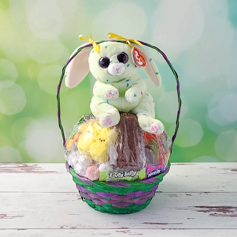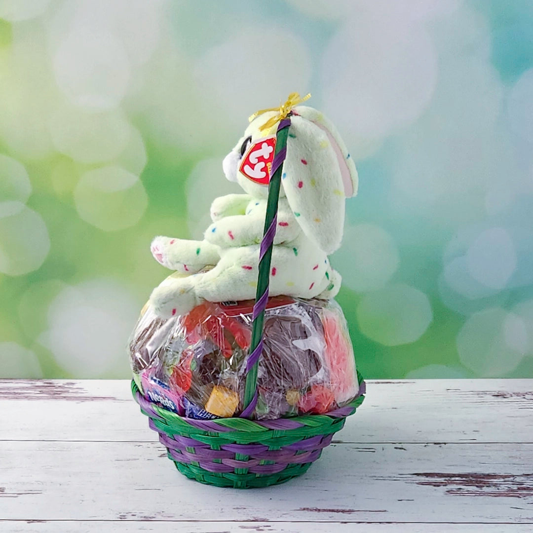 Topping it all off is an adorable TY Stuffed Animal Easter Bunny, soft and cuddly, ready for hugs long after the candy is gone. Each basket is carefully wrapped in clear overwrap, tied with a festive bow, and ready to gift. While the exact basket color may vary, the joy inside is guaranteed!